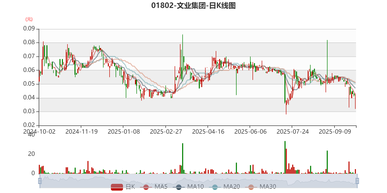 以10月2日收盘价计算,文业集团目前市盈率(TTM)约0.04倍,市净率(TTM)约-0.45倍,市销率(TTM)约7.63倍。