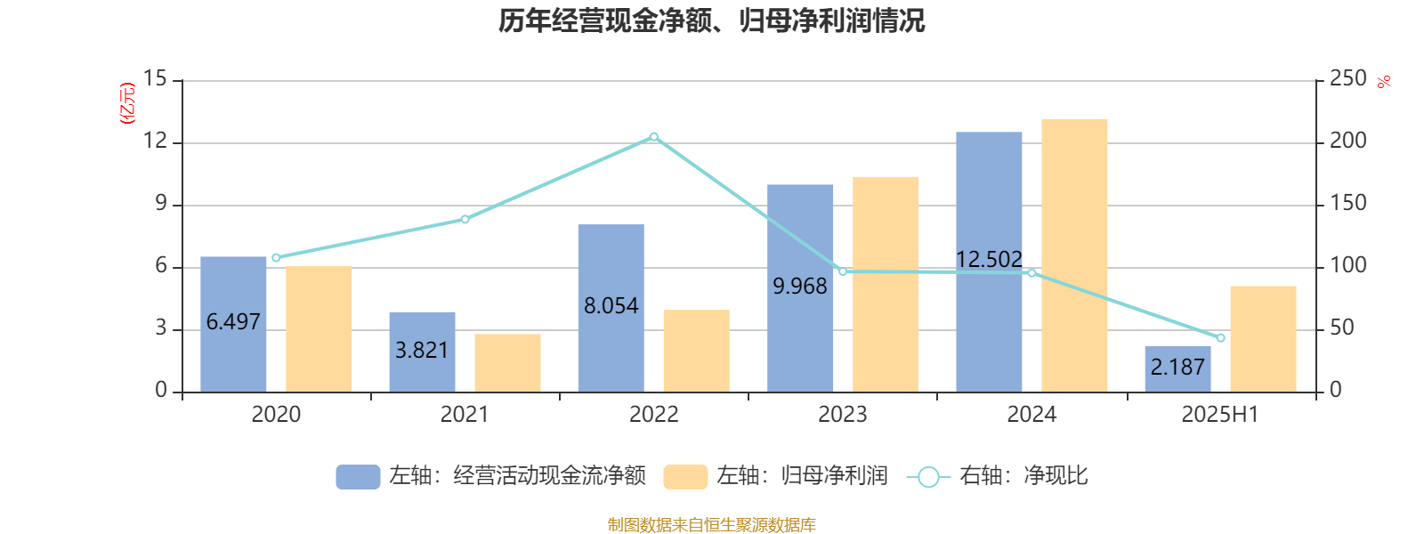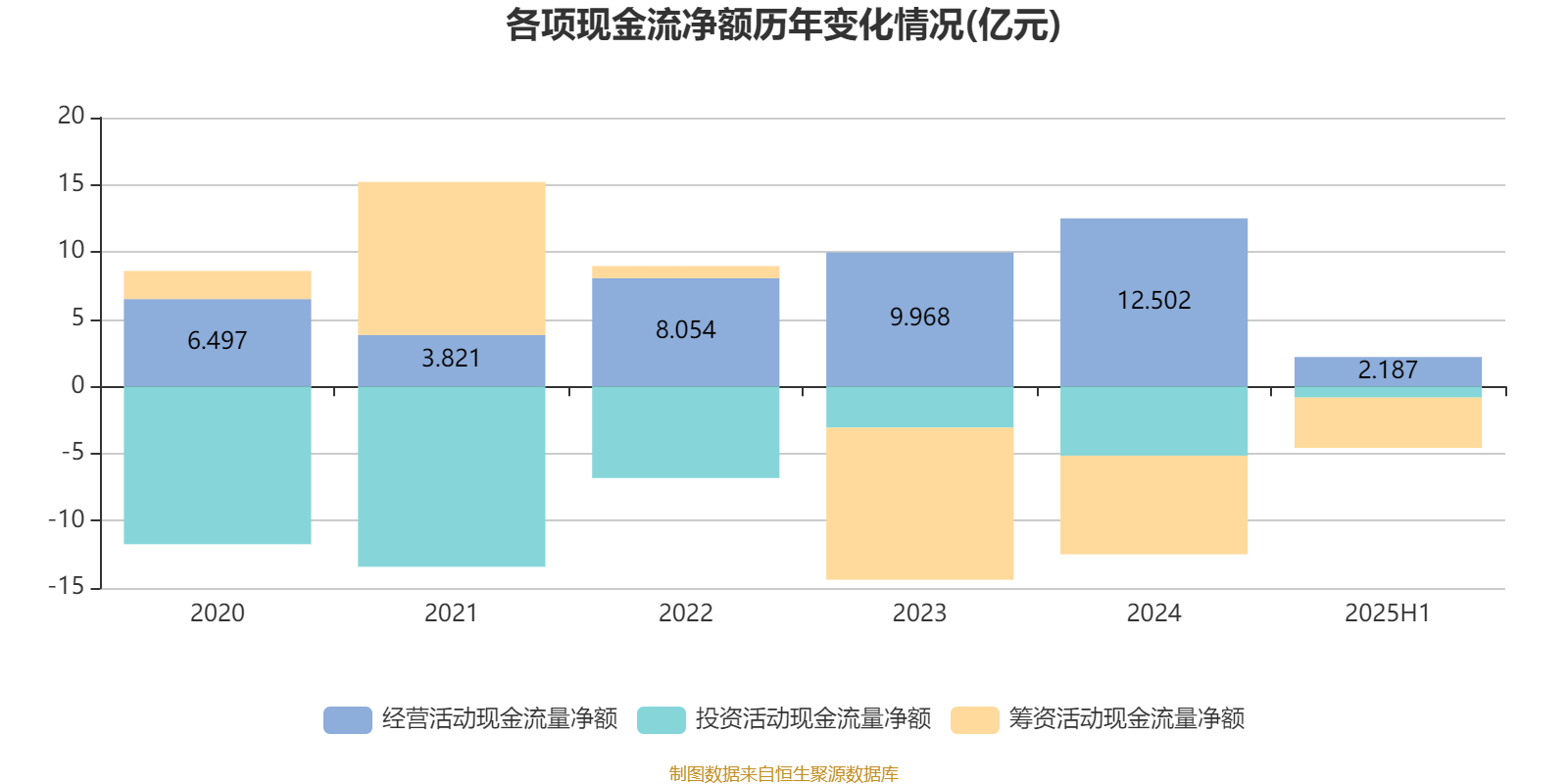 2025年上半年,公司经营活动现金流净额为2.19亿元;筹资活动现金流净额-3.75亿元;投资活动现金流净额-8308.2万元。