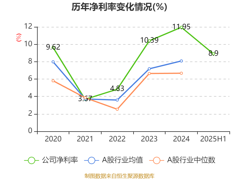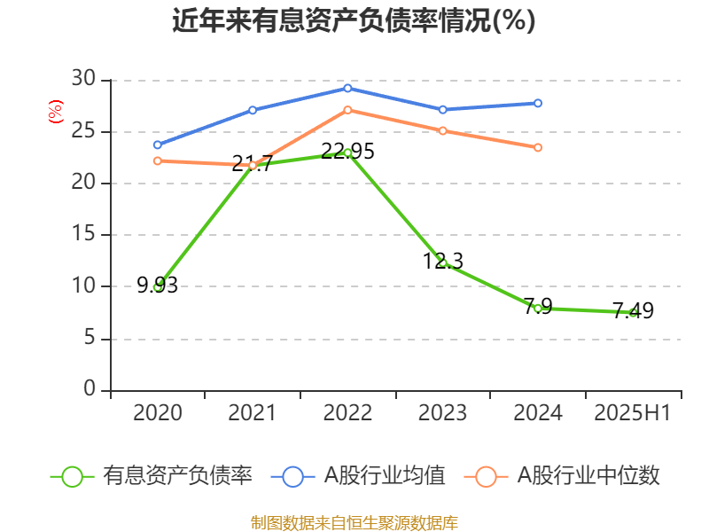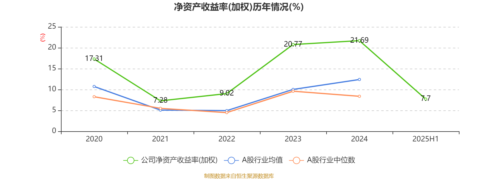 2025年上半年,公司平均净资产收益率为7.7%,较上年同期下降6.35个百分点。