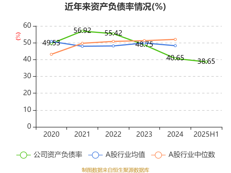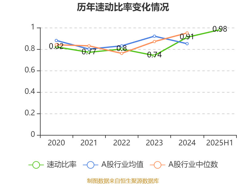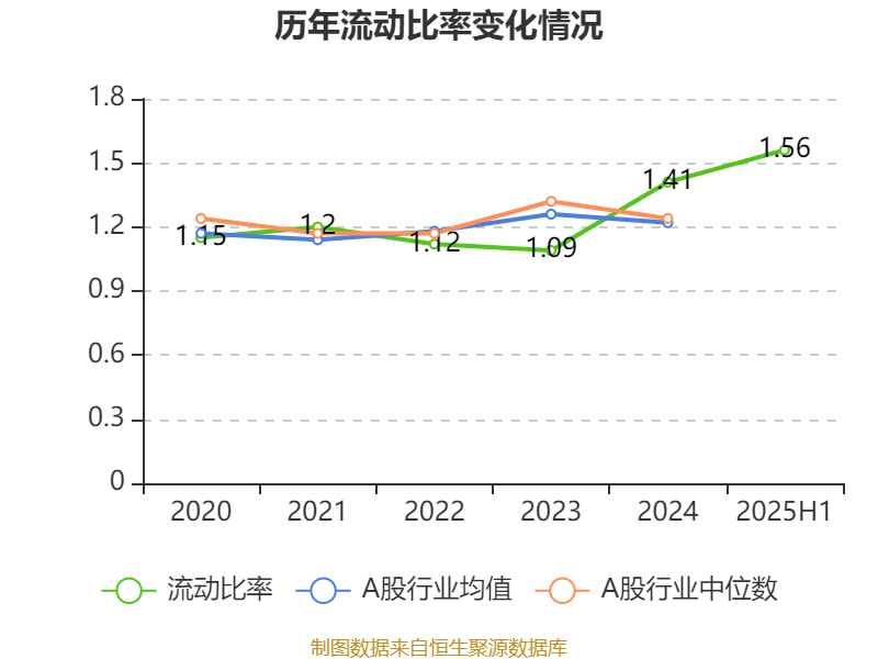2025年上半年,公司流动比率为1.56,速动比率为0.98。