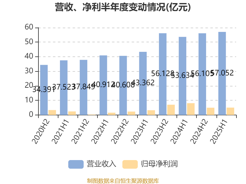 中证智能财讯浦林成山(01809)9月25日披露2025年中期报告。报告期内,公司实现营业收入57.05亿元,同比增长6.37%;归母净利润5.08亿元,同比下降37.44%;经营活动产生的现金流量净额为2.19亿元,同比下降59.92%;据报告显示,浦林成山基本每股收益为0.8元,平均净资产收益率为7.7%。