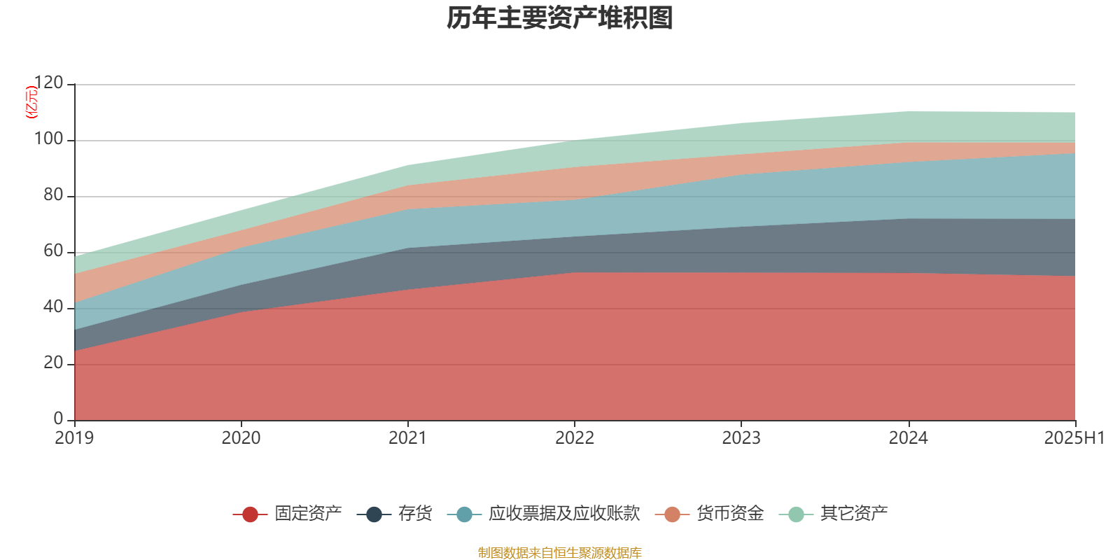 资产重大变化方面,截至2025年上半年,公司应收票据及应收账款较上期末增加15.87%,占公司总资产比重上升2.99个百分点;货币资金较上期末减少44.74%,占公司总资产比重下降2.82个百分点;交易性金融资产较上期末减少93.26%,占公司总资产比重下降1.27个百分点;其他应收款(含利息和股利)较上期末增加61.13%,占公司总资产比重上升1.13个百分点。