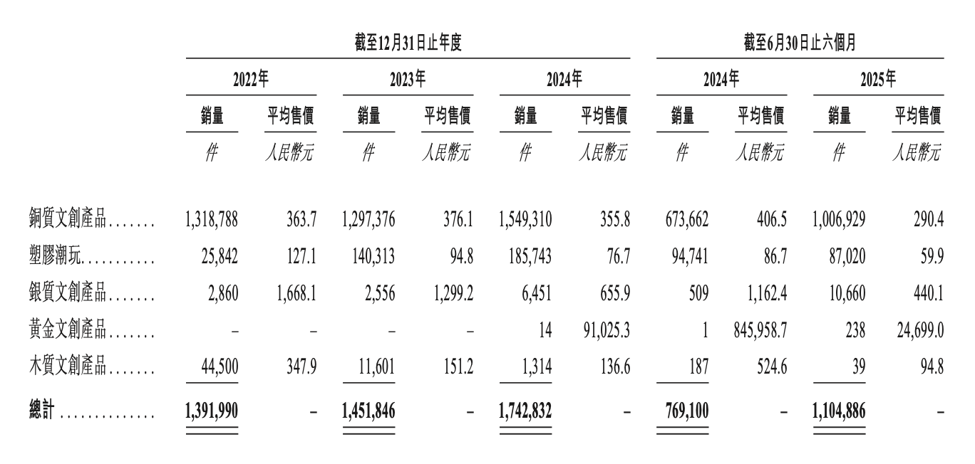 但另一方面,公司铜质文创产品同一时期的平均售价有所下降,分别为363.7元/件、376.1元/件、355.8元/件及290.4元/件。