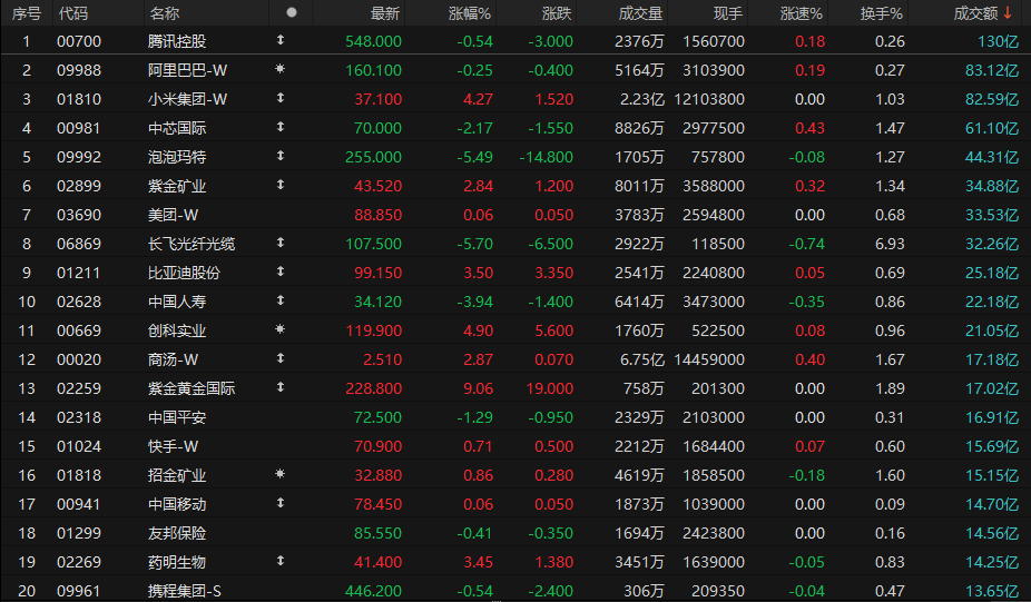 AI摘要:2月11日,港股三大指数延续反弹行情,恒生科技指数一度冲高至1.3%,最终收涨0.9%,恒生指数、国企指数分别上涨0.31%及0.28%,三者均实现3连升。具体盘面上,大型科技股持续回暖,黄金板块涨幅居前,建材水泥股、AI应用概念股上涨。影视股集体回调,半导体股多数弱势,保险股、航空股走低。