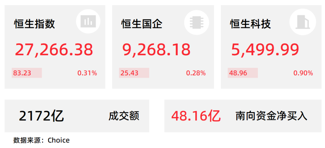2月11日,港股三大指数延续反弹行情,恒生科技指数一度冲高至1.3%,最终收涨0.9%,恒生指数、国企指数分别上涨0.31%及0.28%,三者均实现3连升。