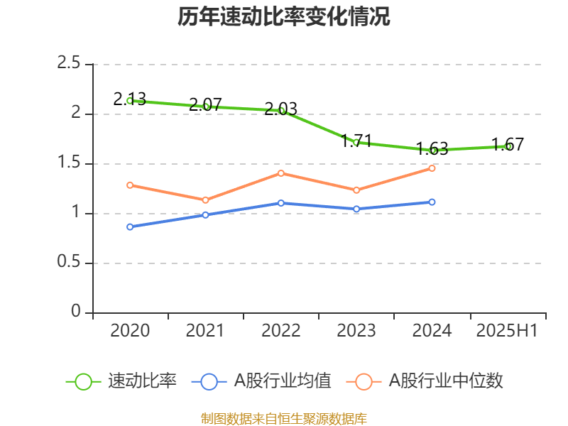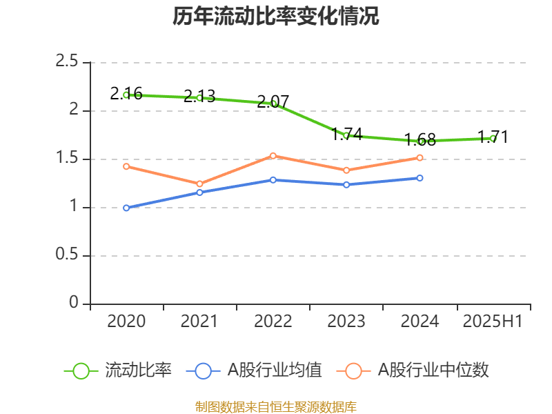2025年上半年,公司流动比率为1.71,速动比率为1.67。