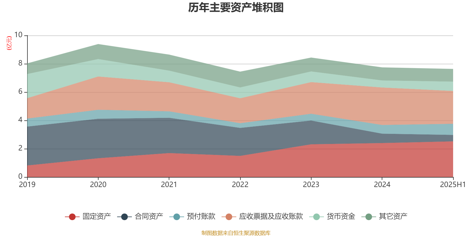 资产重大变化方面,截至2025年上半年,公司应收票据及应收账款较上期末减少12.42%,占公司总资产比重下降3.83个百分点;合同资产较上期末减少31.33%,占公司总资产比重下降2.58个百分点;预付账款较上期末增加27.68%,占公司总资产比重上升2.35个百分点;货币资金较上期末增加32.46%,占公司总资产比重上升2.21个百分点。