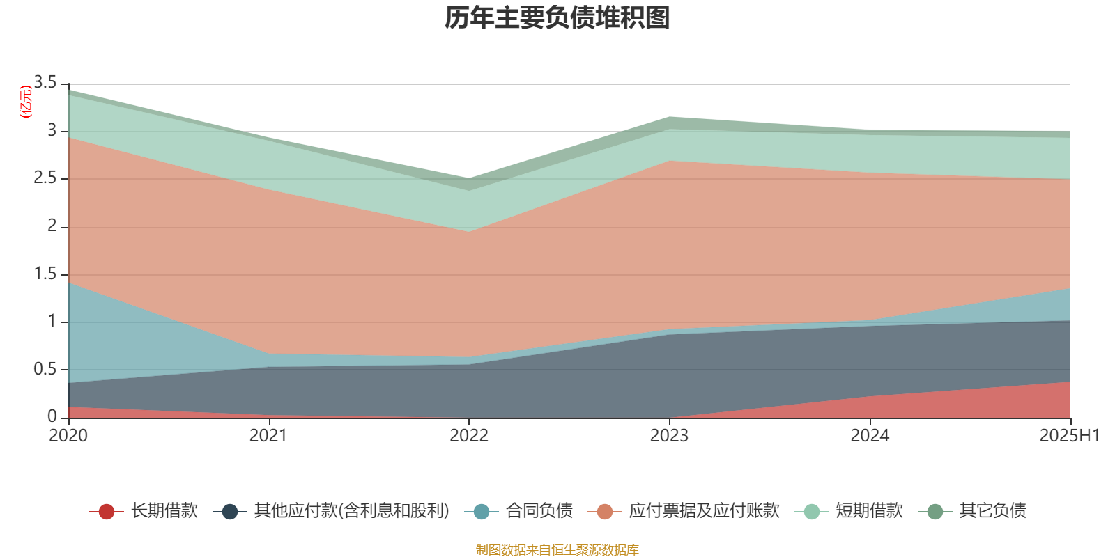 负债重大变化方面,截至2025年上半年,公司应付票据及应付账款较上期末减少26.12%,占公司总资产比重下降5.01个百分点;合同负债较上期末增加434.96%,占公司总资产比重上升3.61个百分点;长期借款较上期末增加67.24%,占公司总资产比重上升2.02个百分点;其他应付款(含利息和股利)较上期末减少12.52%,占公司总资产比重下降1.07个百分点。
