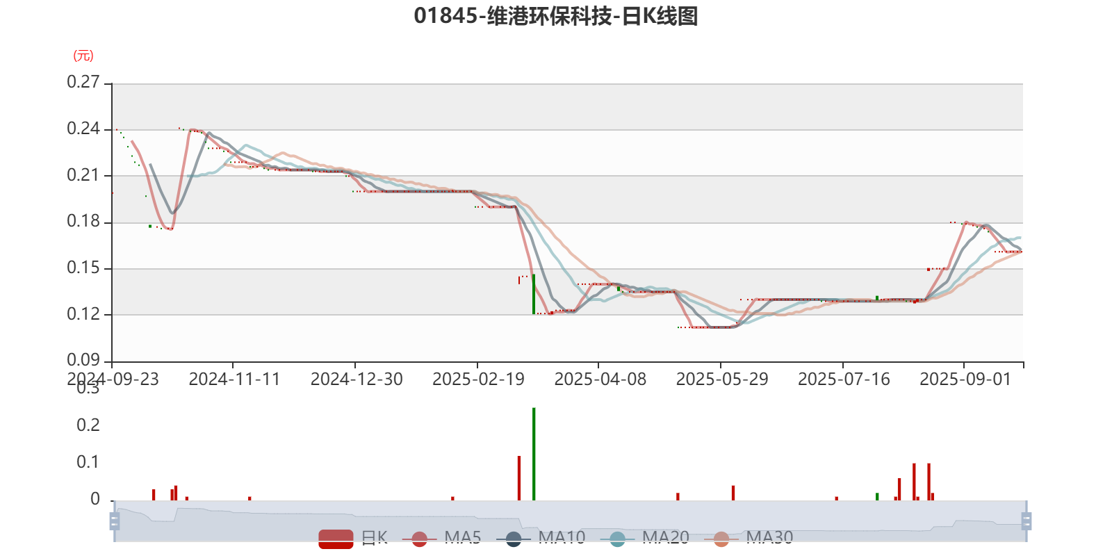 以9月22日收盘价计算,维港环保科技目前市净率(TTM)约0.54倍,市销率(TTM)约0.84倍。