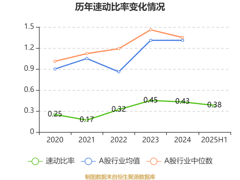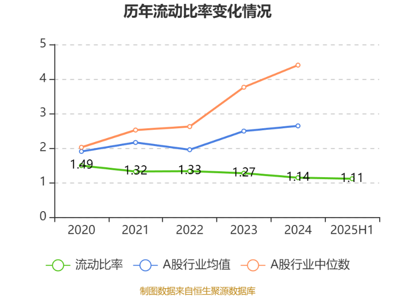 2025年上半年,公司流动比率为1.11,速动比率为0.38。