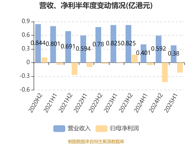 中证智能财讯依波路(01856)9月29日披露2025年中期报告。报告期内,公司实现营业收入3800.6万港元,同比下降5.15%;归母净利润亏损2175万港元,上年同期亏损533.7万港元;据报告显示,依波路基本每股收益为-0.0604港元,平均净资产收益率为-22.21%。