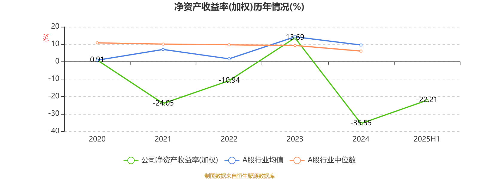 2025年上半年,公司平均净资产收益率为-22.21%,较上年同期下降18.9个百分点。