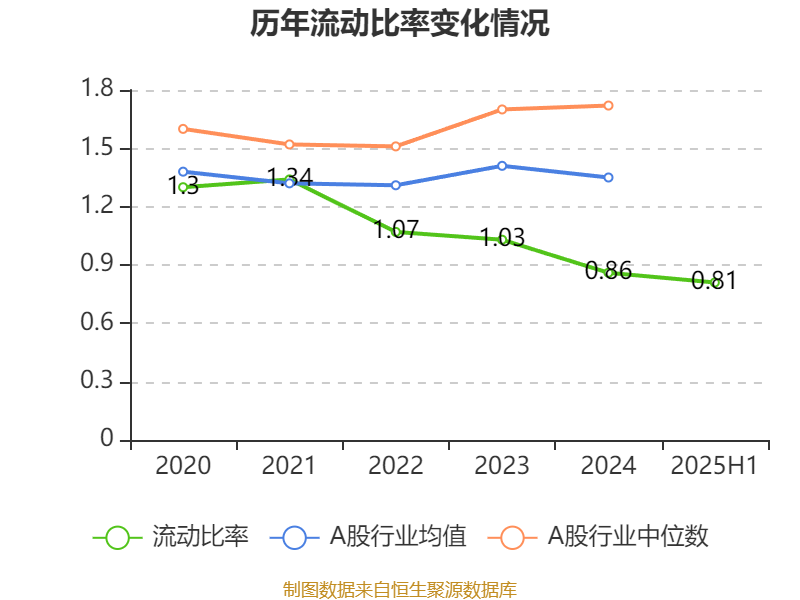 2025年上半年,公司流动比率为0.81,速动比率为0.28。