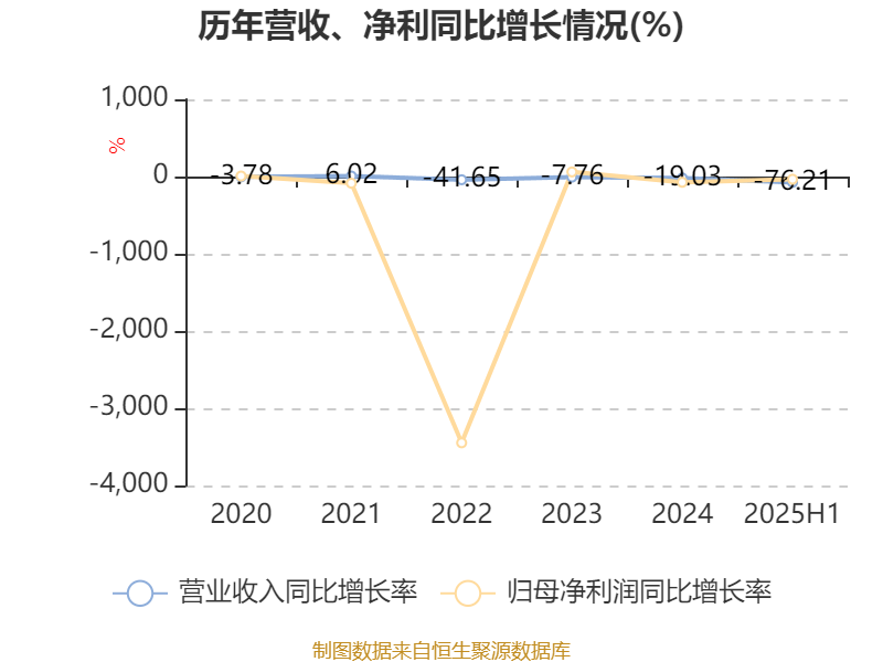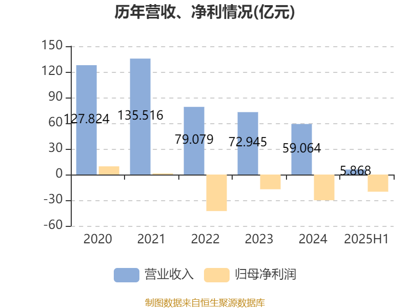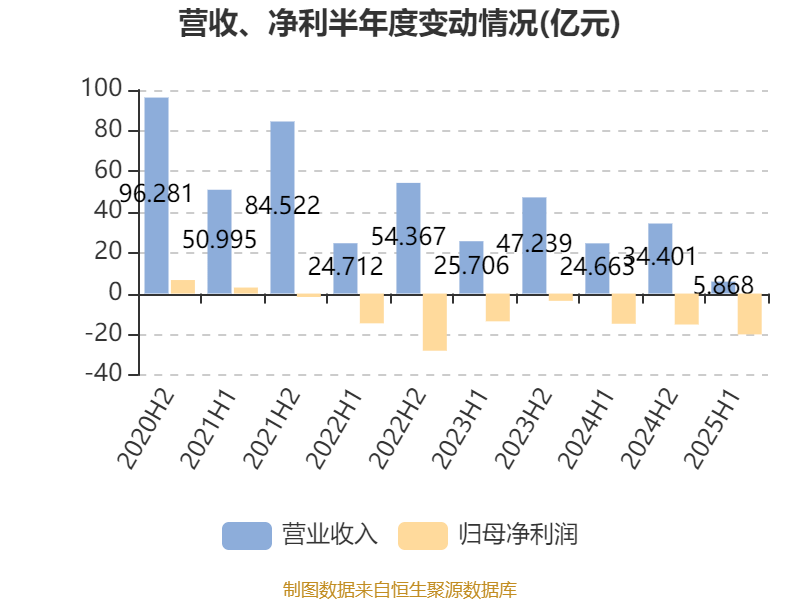 中证智能财讯景瑞控股(01862)9月30日披露2025年中期报告。报告期内,公司实现营业收入5.87亿元,同比下降76.21%;归母净利润亏损20.06亿元,上年同期亏损14.83亿元;据报告显示,景瑞控股基本每股收益为-1.3元。