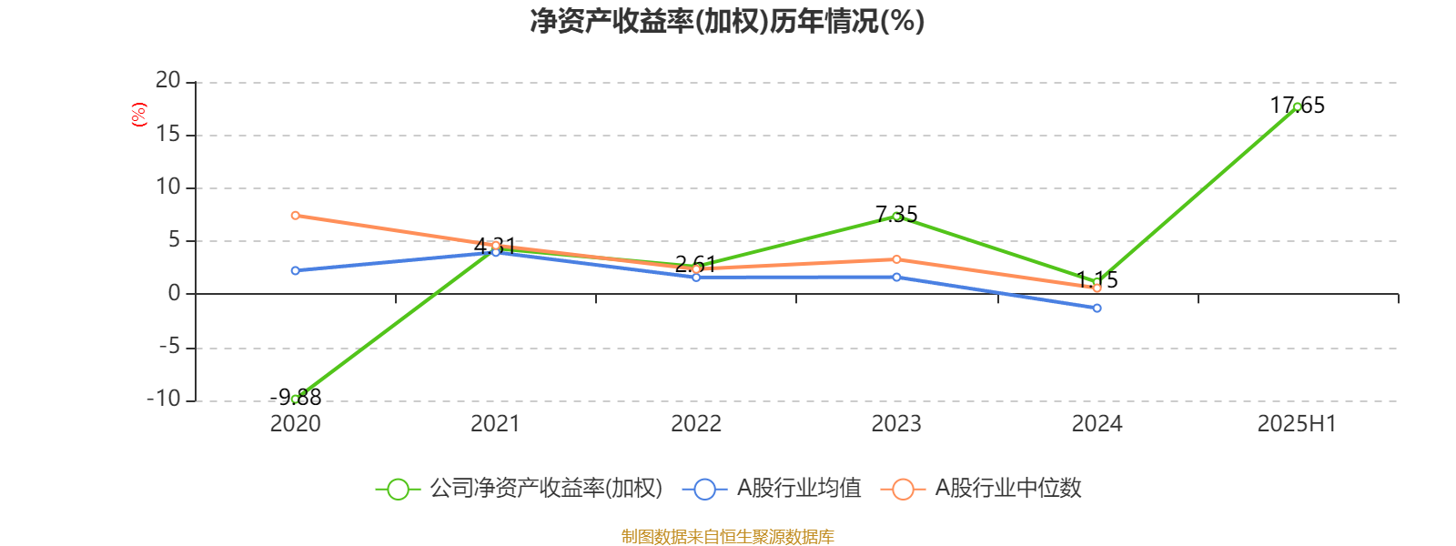 2025年上半年,公司平均净资产收益率为17.65%,较上年同期上升19.67个百分点。