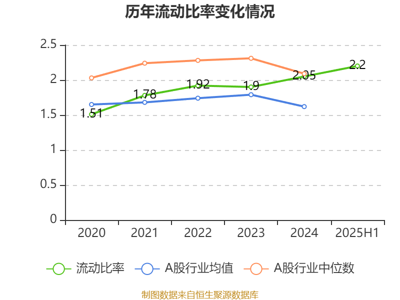 2025年上半年,公司流动比率为2.20,速动比率为1.88。