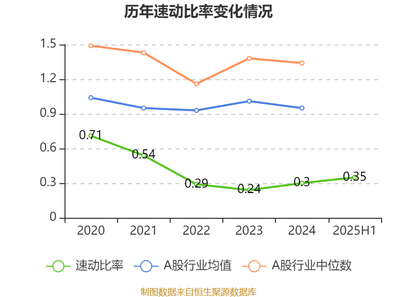2025年上半年,公司流动比率为0.67,速动比率为0.35。