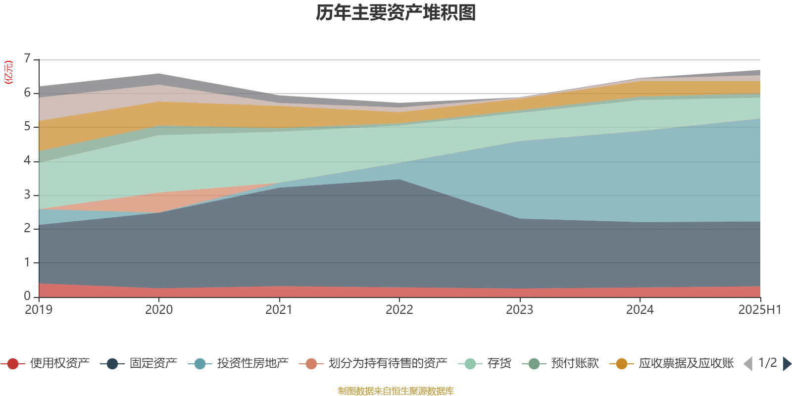 资产重大变化方面,截至2025年上半年,公司存货较上期末减少32.85%,占公司总资产比重下降5个百分点;投资性房地产较上期末增加13.15%,占公司总资产比重上升3.8个百分点;应收票据及应收账款较上期末减少20.99%,占公司总资产比重下降1.69个百分点;货币资金较上期末增加125.59%,占公司总资产比重上升1.4个百分点。