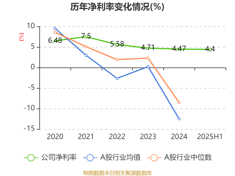 2025年上半年,公司平均净资产收益率为2.42%,较上年同期持平。