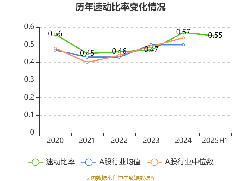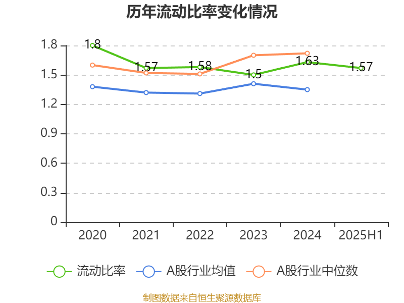 2025年上半年,公司流动比率为1.57,速动比率为0.55。