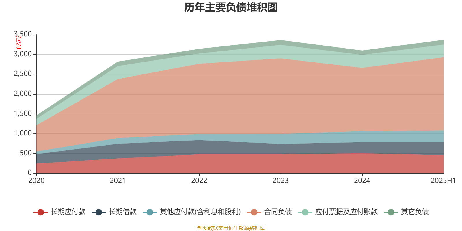 负债重大变化方面,截至2025年上半年,公司合同负债较上期末增加15.65%,占公司总资产比重上升2.88个百分点;长期应付款较上期末减少10.69%,占公司总资产比重下降2.09个百分点;长期借款较上期末增加19.51%,占公司总资产比重上升0.74个百分点;应付票据及应付账款较上期末减少2.18%,占公司总资产比重下降0.72个百分点。