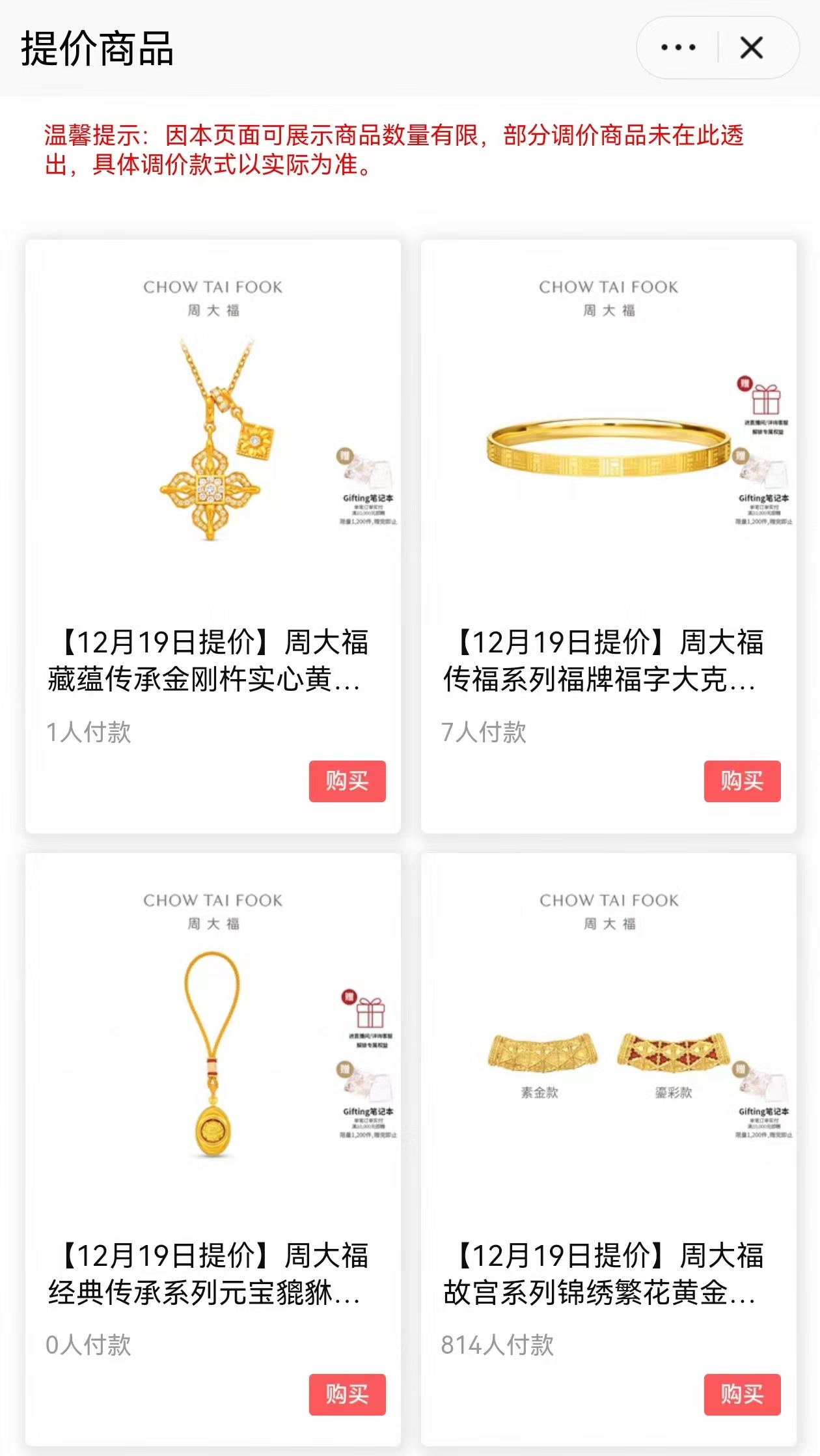 周大福拟于12月19日对部分商品提价