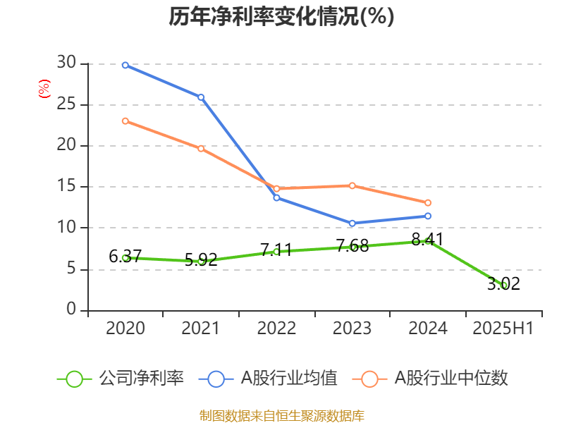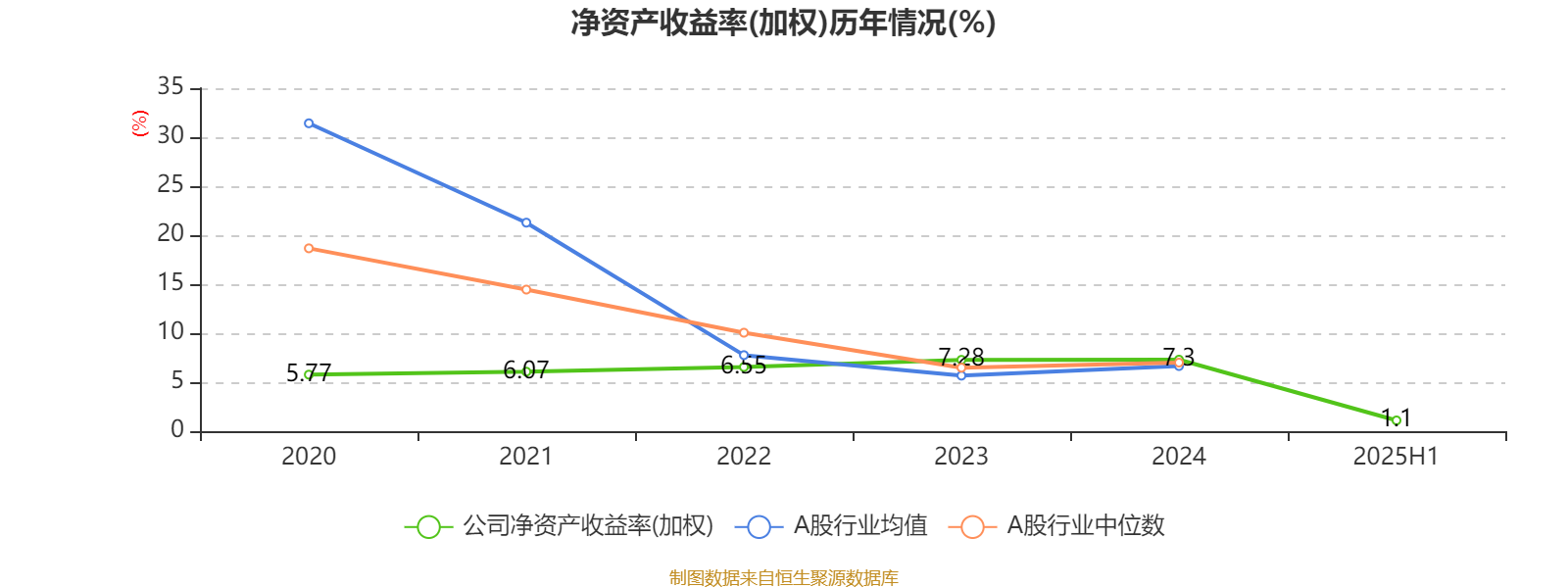 2025年上半年,公司平均净资产收益率为1.1%,较上年同期下降2.61个百分点。