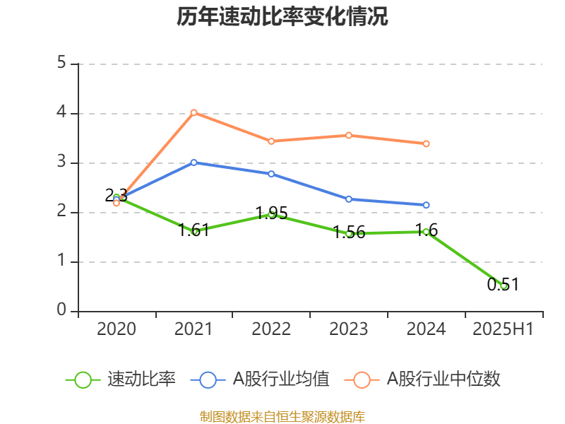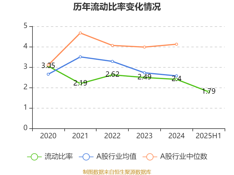 2025年上半年,公司流动比率为1.79,速动比率为0.51。