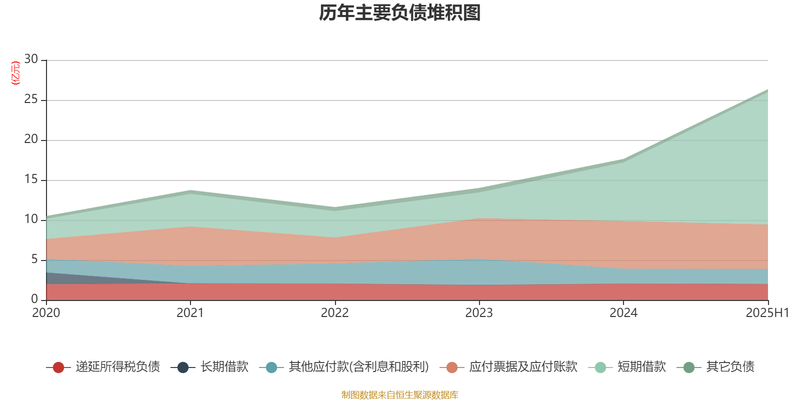 负债重大变化方面,截至2025年上半年,公司短期借款较上期末增加125.93%,占公司总资产比重上升13.61个百分点;应付票据及应付账款较上期末减少6.47%,占公司总资产比重下降1.74个百分点;递延所得税负债较上期末减少2.09%,占公司总资产比重下降0.45个百分点;其他应付款(含利息和股利)较上期末增加0.12%,占公司总资产比重下降0.35个百分点。