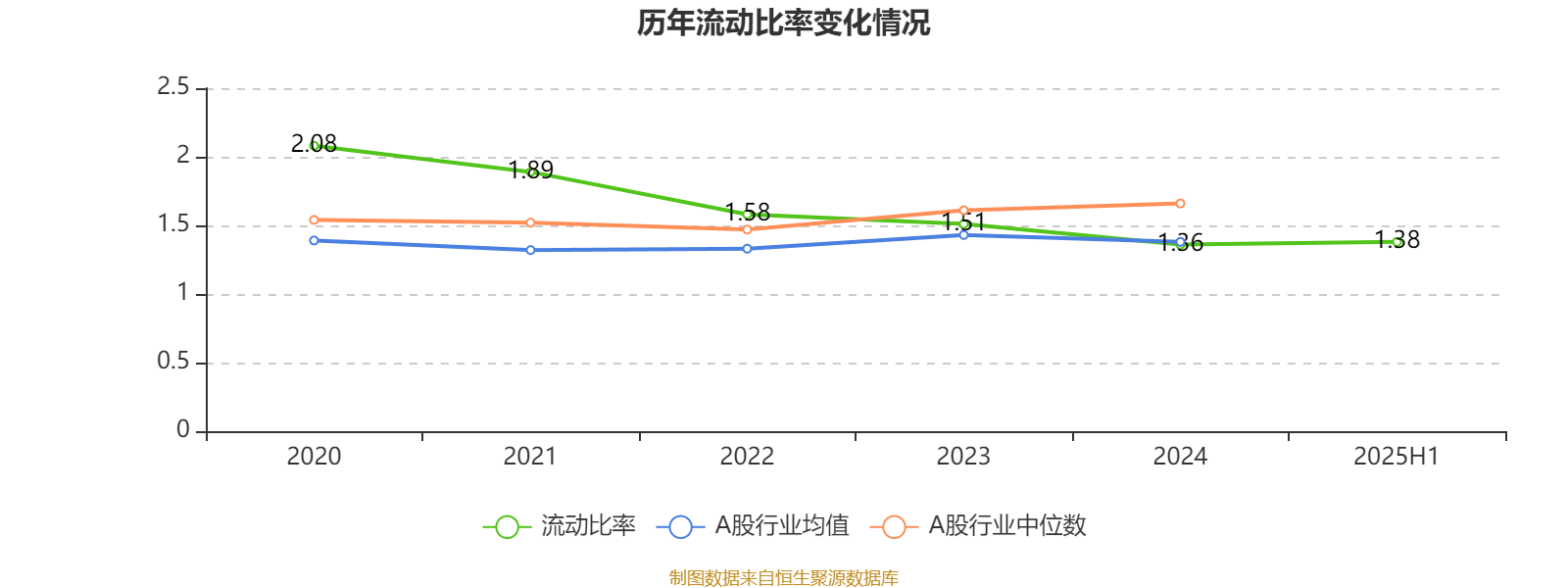 2025年上半年,公司流动比率为1.38。