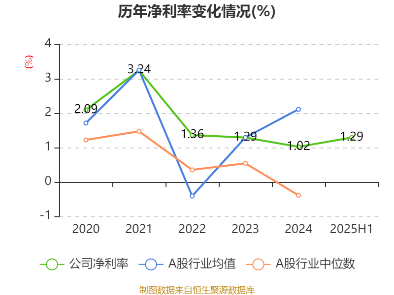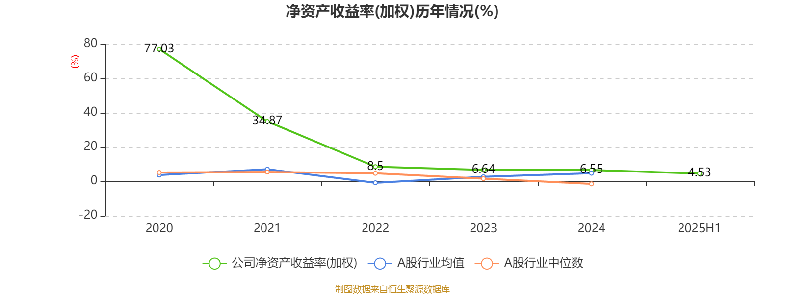 2025年上半年,公司平均净资产收益率为4.53%,较上年同期上升1.42个百分点。
