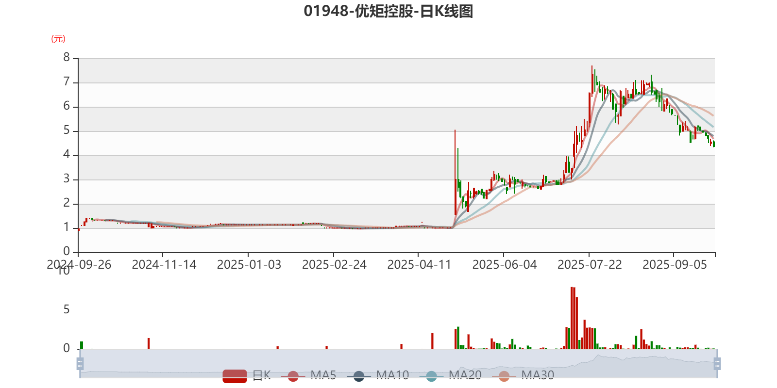 以9月26日收盘价计算,优矩控股目前市盈率(TTM)约20.44倍,市净率(TTM)约1.6倍,市销率(TTM)约0.23倍。