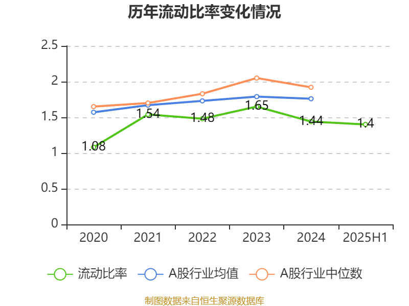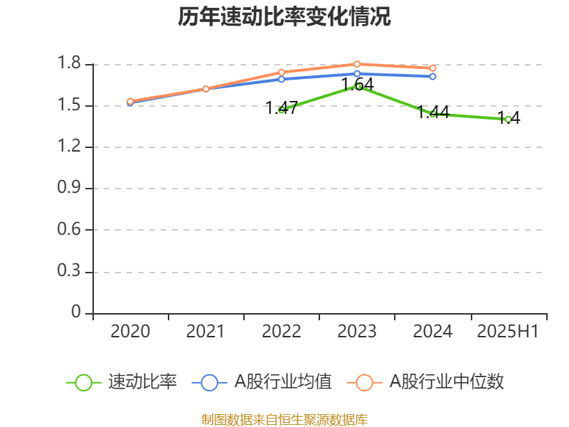 2025年上半年,公司流动比率为1.40,速动比率为1.4。