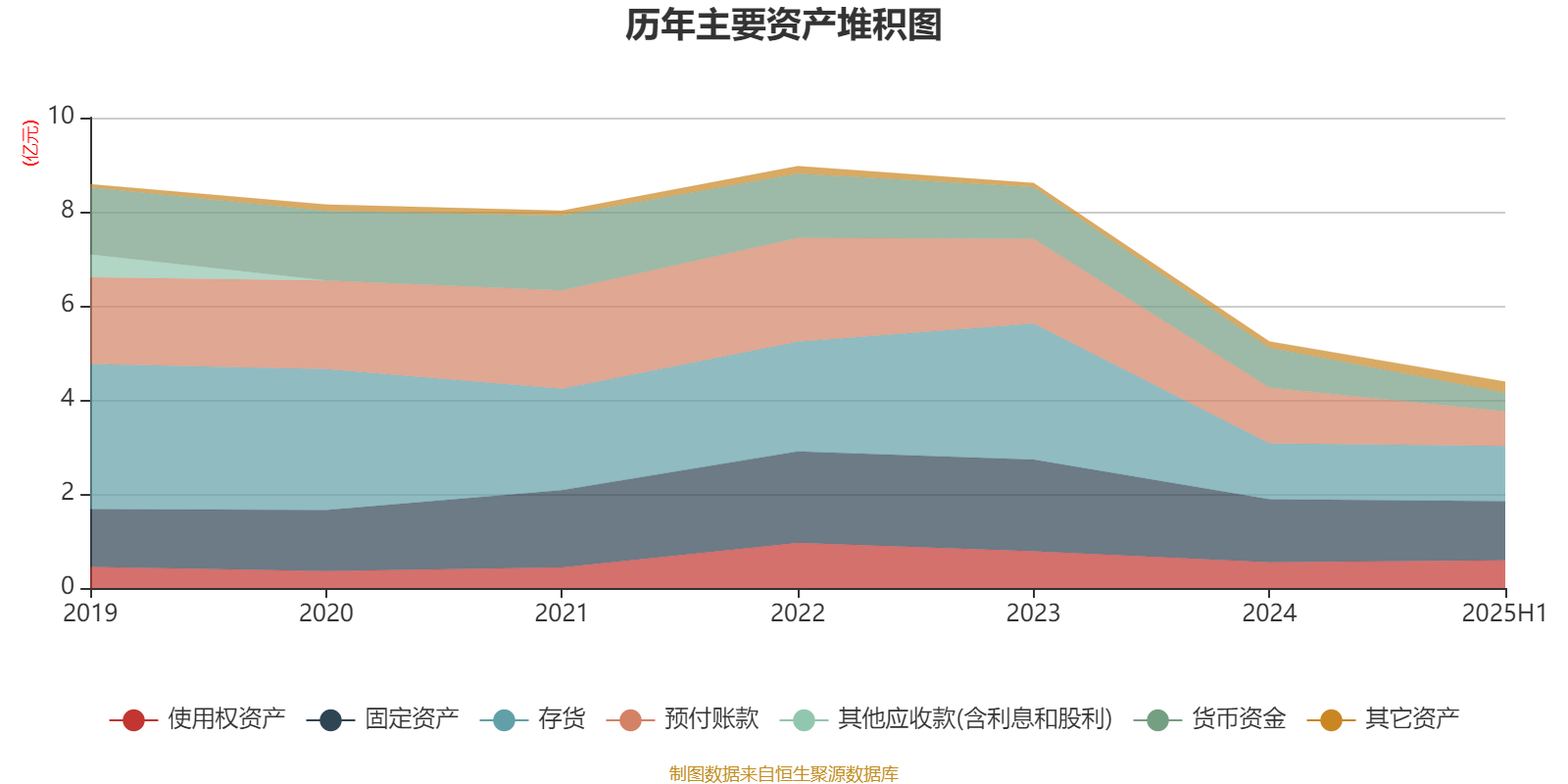 资产重大变化方面,截至2025年上半年,公司货币资金较上期末减少53.04%,占公司总资产比重下降7.08个百分点;预付账款较上期末减少37.65%,占公司总资产比重下降5.79个百分点;存货较上期末减少1.3%,占公司总资产比重上升4.05个百分点;固定资产较上期末减少6.24%,占公司总资产比重上升3.05个百分点。