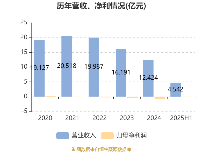 中证智能财讯世纪联合控股(01959)9月29日披露2025年中期报告。报告期内,公司实现营业收入4.54亿元,同比下降38.45%;归母净利润亏损1598.4万元,上年同期亏损5235.6万元;据报告显示,世纪联合控股基本每股收益为-0.0315元,平均净资产收益率为-17.5%。
