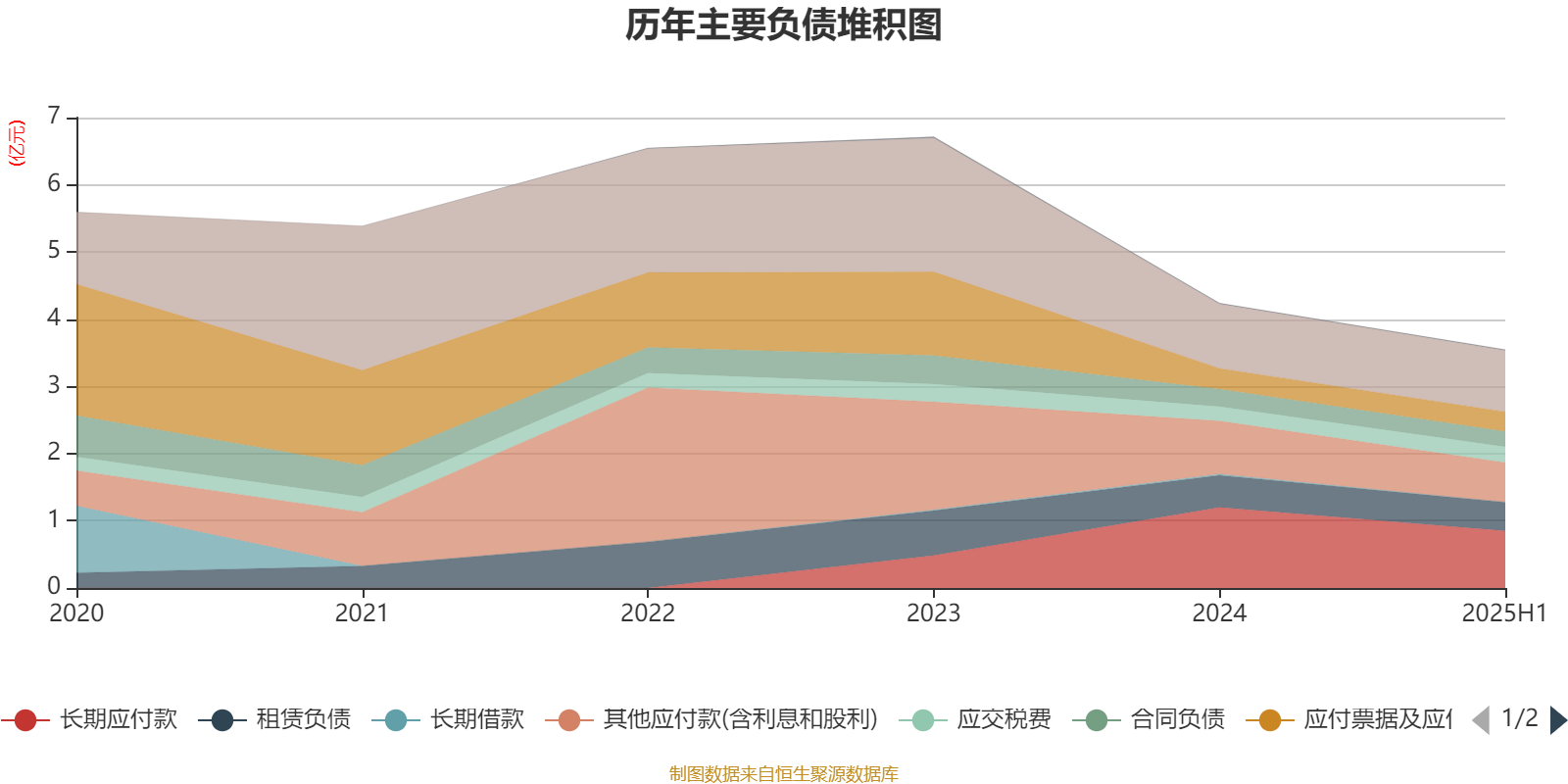 负债重大变化方面,截至2025年上半年,公司长期应付款较上期末减少29.17%,占公司总资产比重下降3.53个百分点;短期借款较上期末减少4.69%,占公司总资产比重上升2.52个百分点;其他应付款(含利息和股利)较上期末减少25.08%,占公司总资产比重下降1.58个百分点;应交税费较上期末增加8.24%,占公司总资产比重上升1.2个百分点。