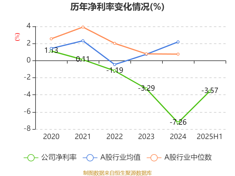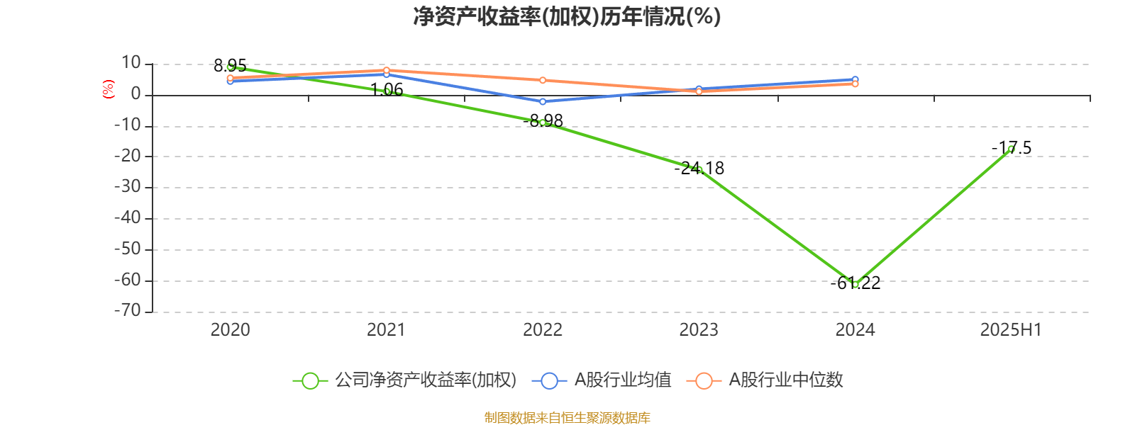 2025年上半年,公司平均净资产收益率为-17.5%,较上年同期上升14.53个百分点。