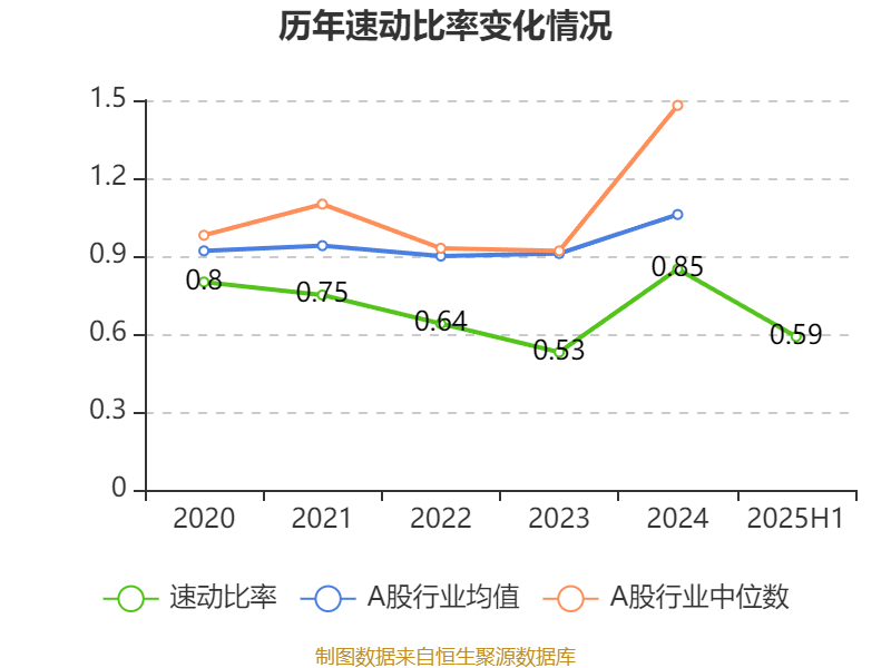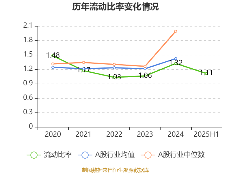 2025年上半年,公司流动比率为1.11,速动比率为0.59。