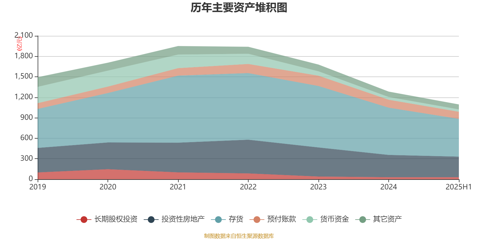 资产重大变化方面,截至2025年上半年,公司存货较上期末减少20.02%,占公司总资产比重下降3.4个百分点;投资性房地产较上期末减少7.93%,占公司总资产比重上升2个百分点;预付账款较上期末减少10.25%,占公司总资产比重上升0.47个百分点;长期股权投资较上期末增加2.03%,占公司总资产比重上升0.44个百分点。