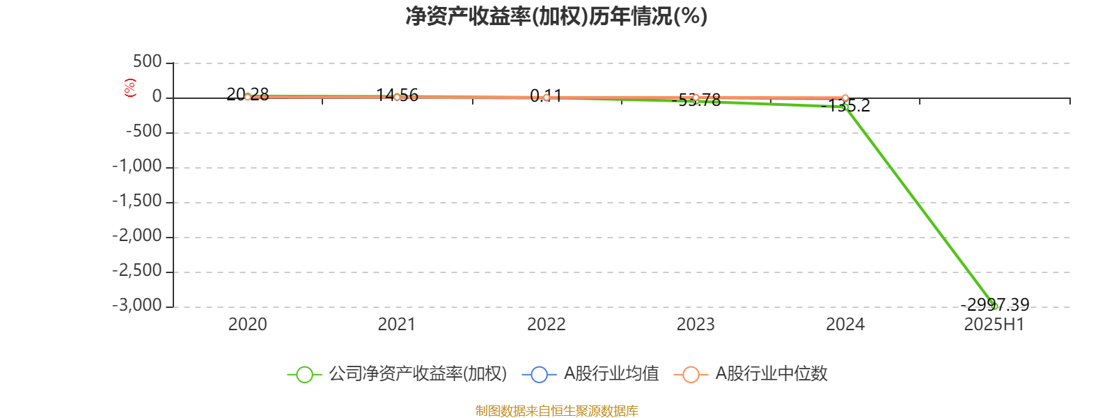 2025年上半年,公司平均净资产收益率为-2997.39%,较上年同期下降2949.23个百分点。