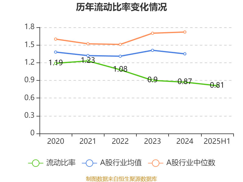 2025年上半年,公司流动比率为0.81,速动比率为0.21。