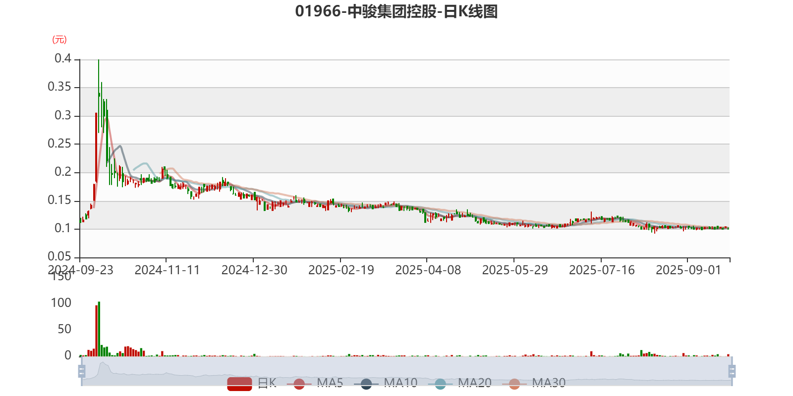 以9月22日收盘价计算,中骏集团控股目前市净率(TTM)约-0.27倍,市销率(TTM)约0.01倍。