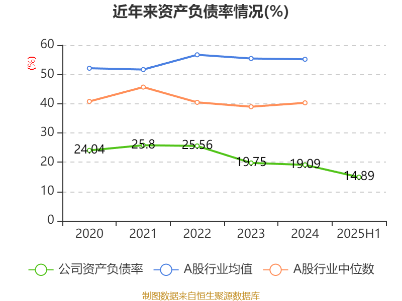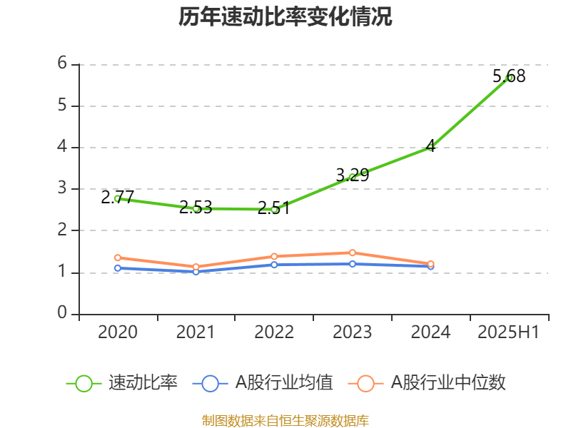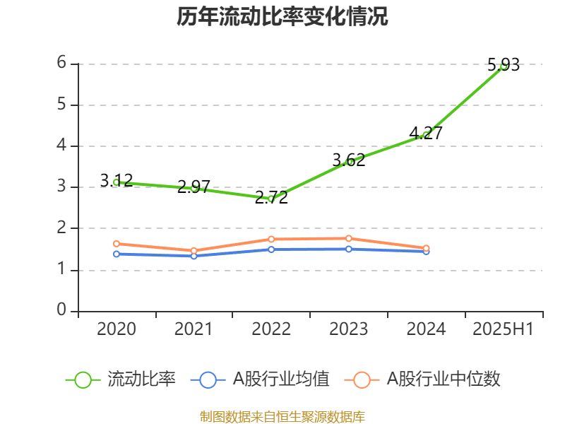 2025年上半年,公司流动比率为5.93,速动比率为5.68。