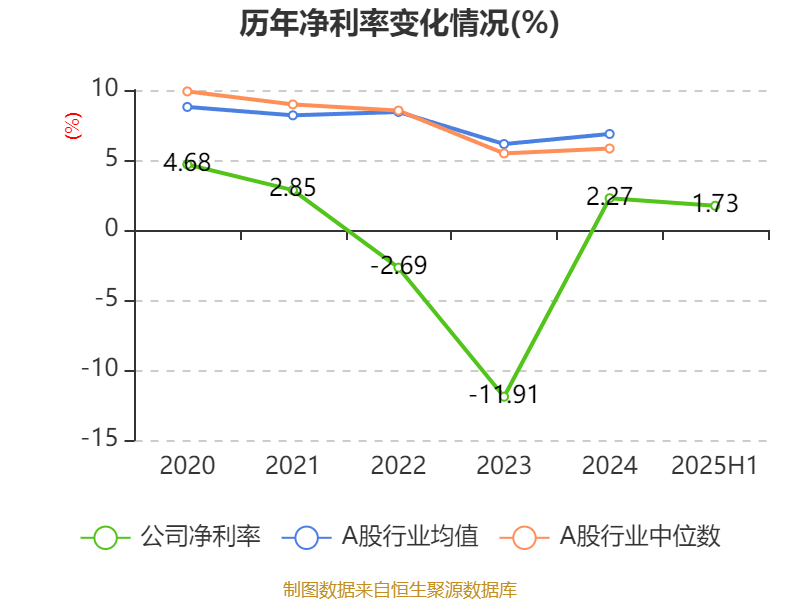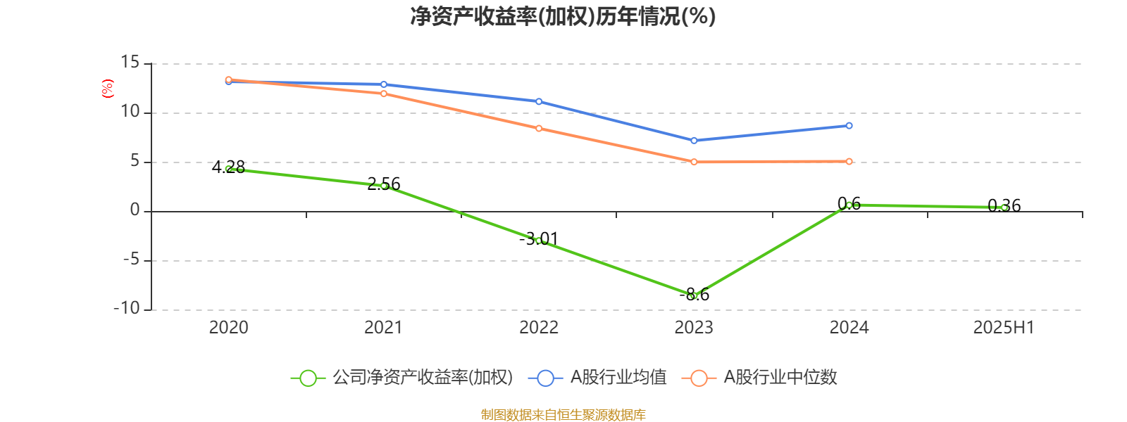 2025年上半年,公司平均净资产收益率为0.36%,较上年同期下降2.97个百分点。