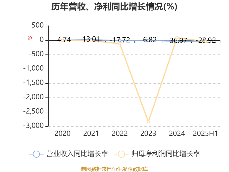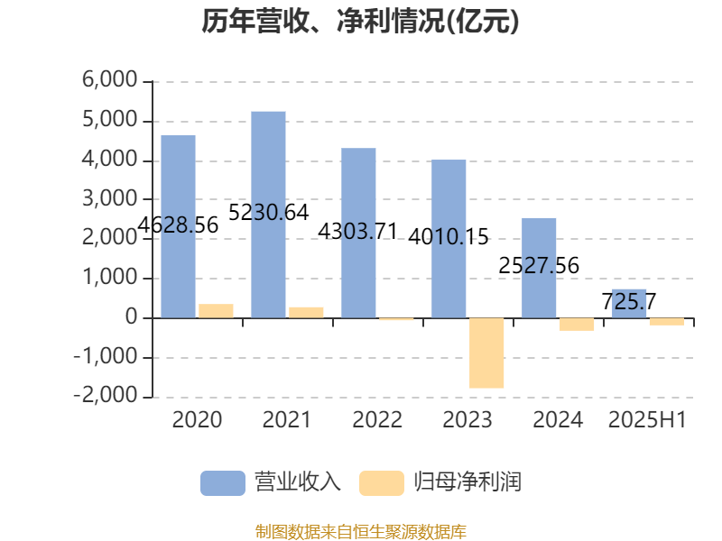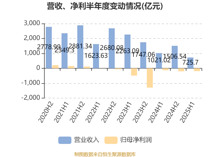 中证智能财讯碧桂园(02007)9月25日披露2025年中期报告。报告期内,公司实现营业收入725.7亿元,同比下降28.92%;归母净利润亏损190.78亿元,上年同期亏损128.42亿元;据报告显示,碧桂园基本每股收益为-0.69元。