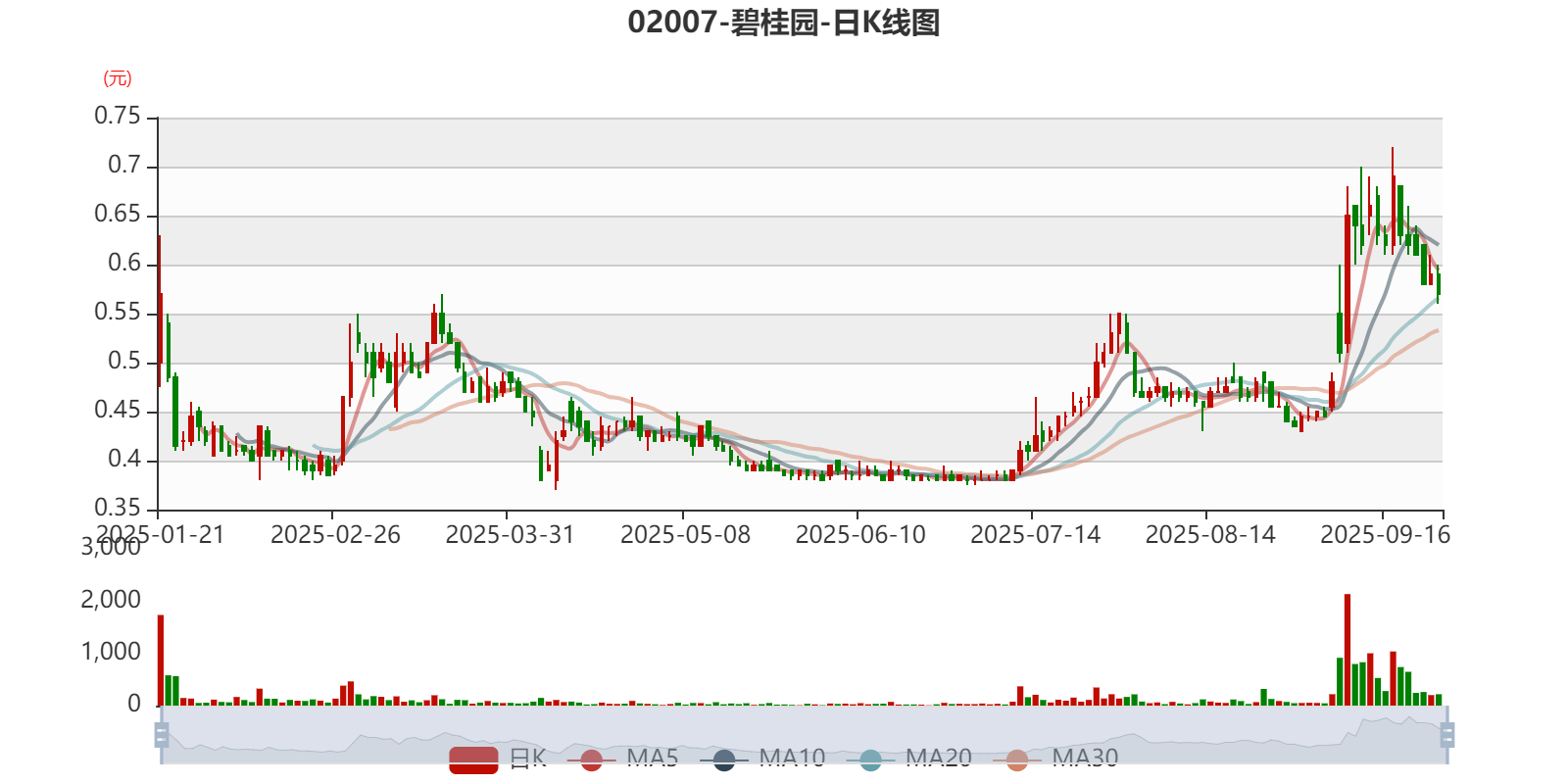 以9月25日收盘价计算,碧桂园目前市净率(TTM)约-0.56倍,市销率(TTM)约0.07倍。