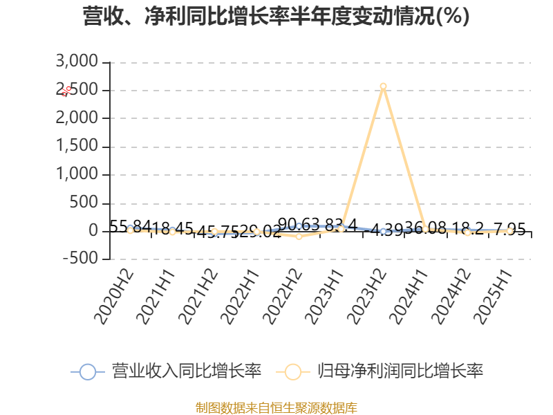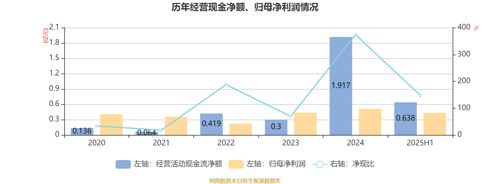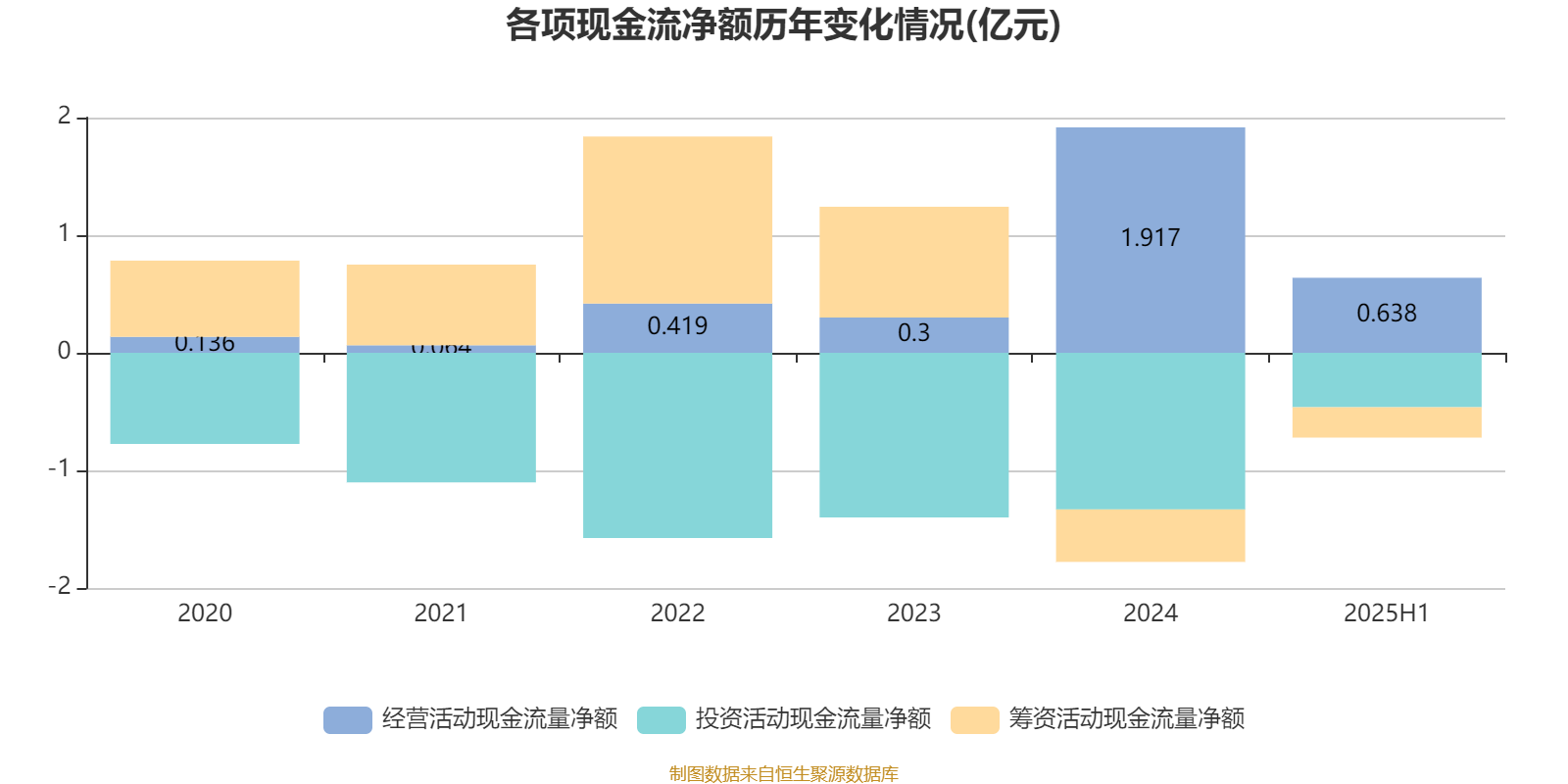 2025年上半年,公司经营活动现金流净额为6384.9万元;筹资活动现金流净额-2584.8万元;投资活动现金流净额-4628万元。