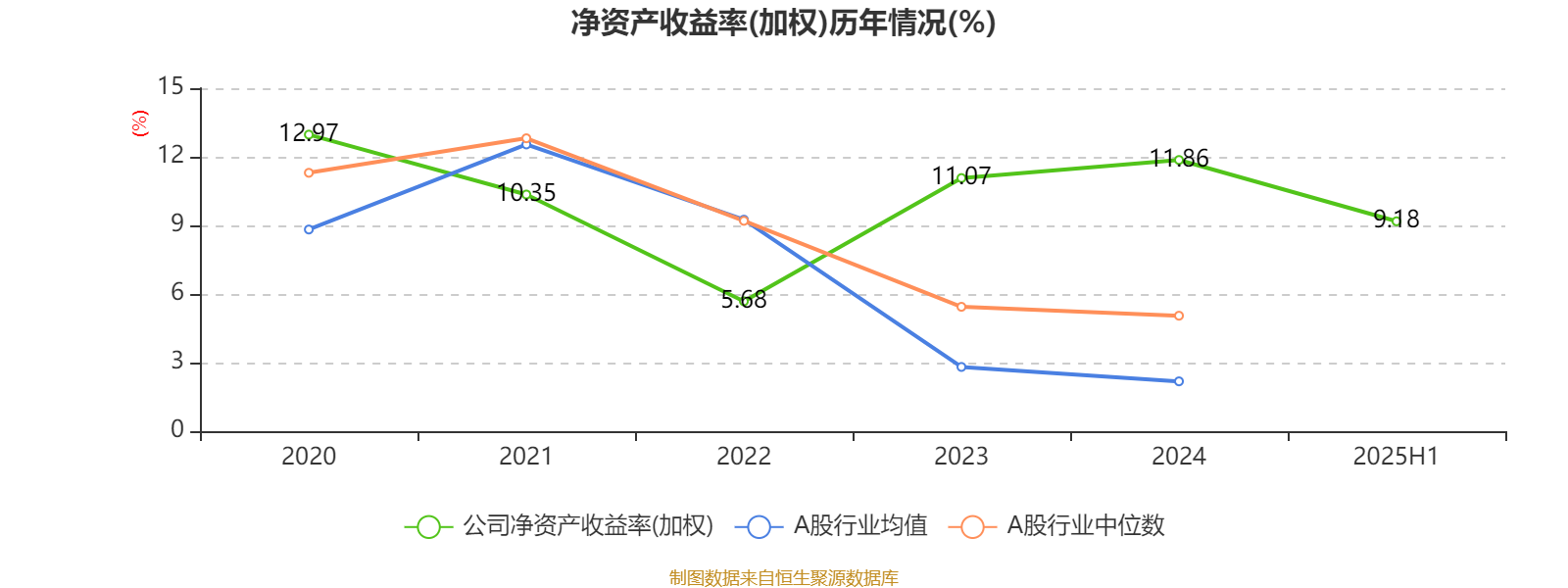 2025年上半年,公司平均净资产收益率为9.18%,较上年同期下降0.37个百分点。