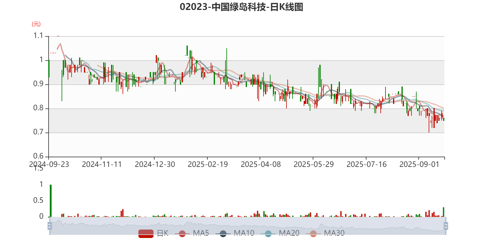 以9月22日收盘价计算,中国绿岛科技目前市盈率(TTM)约6.36倍,市净率(TTM)约0.67倍,市销率(TTM)约0.35倍。