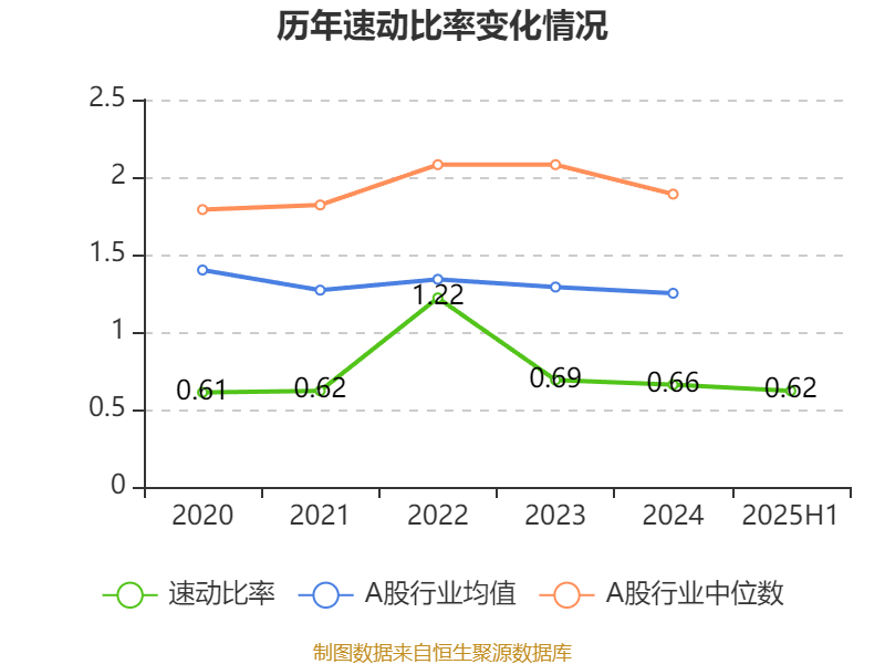 2025年上半年,公司流动比率为0.70,速动比率为0.62。